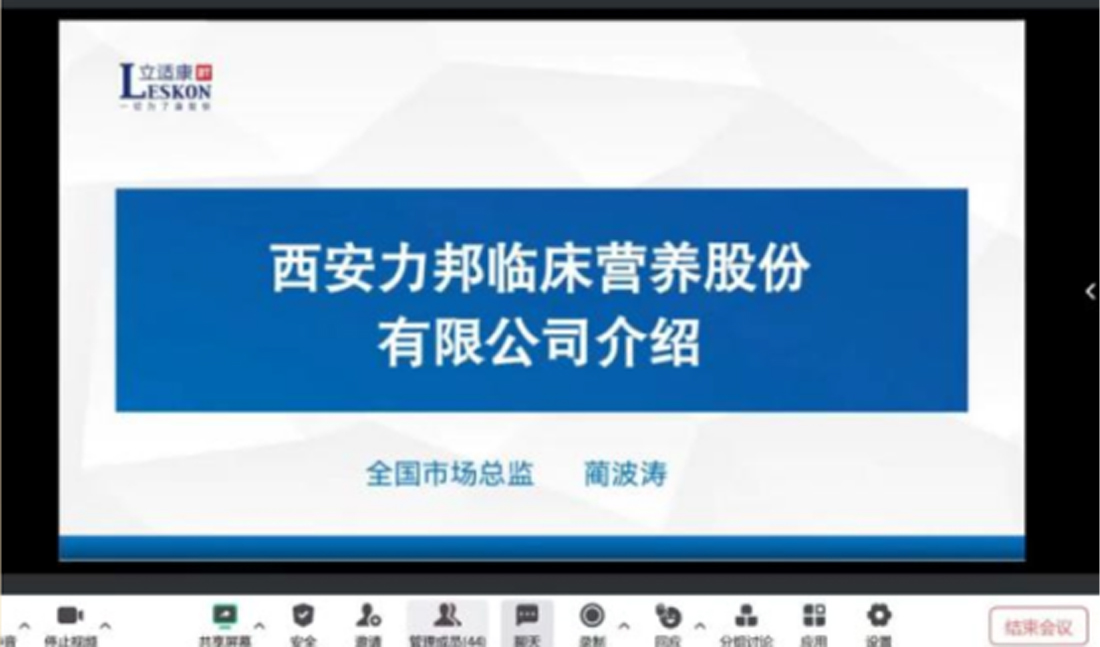 6月11日,陕西省医学会2023年临床营养学学术年会暨第六届快速康复外科高峰论坛上,力邦营养召开首场特医卫星会会议由西安交通大学第二附属医院营养科赵平教授主持,空军军医大学营养教研室主任杨瑞华教授做了题为《危重症患者的营养管理》的专题报告,报告中就力邦营养的两款特医产品 (立如箐®、立佳营®)向与会专家做了详细介绍。